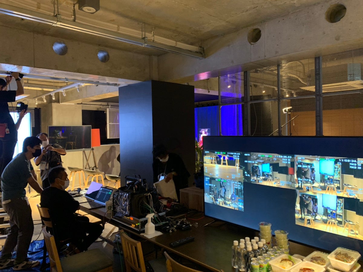 使用した製品は65インチの大型モニターで、スタジオ内の撮影している映像を分割で表示ができるので、カメラ配置やスタジオ内・放映映像の明るさや、色味の調整もモニターを見ながら行えます。
