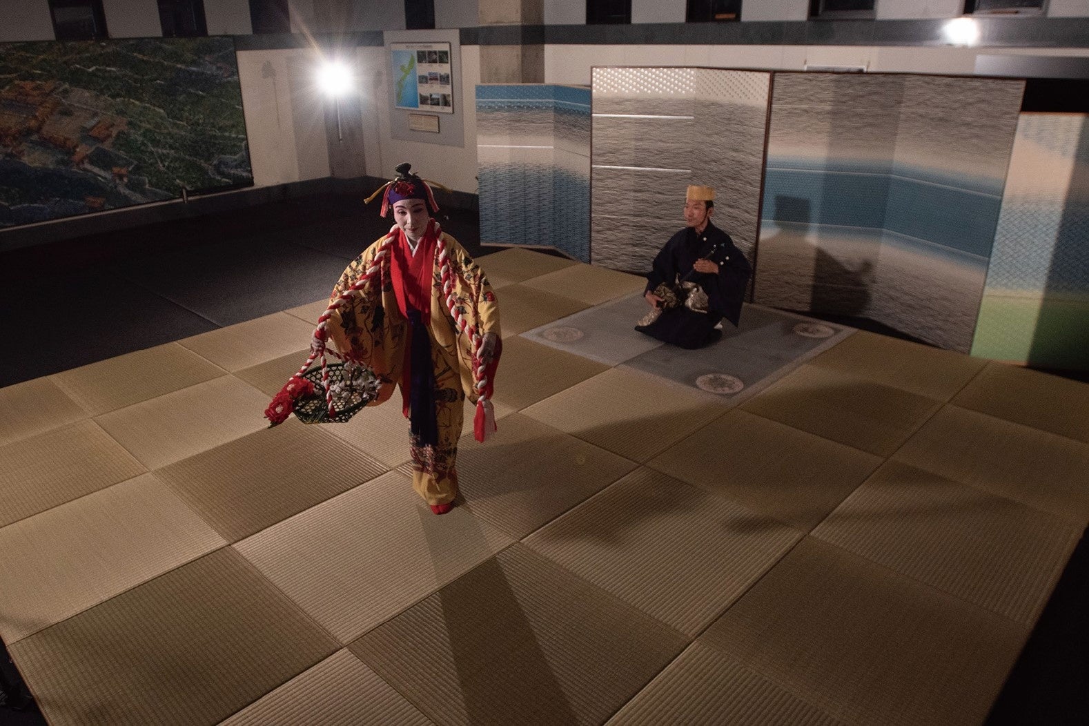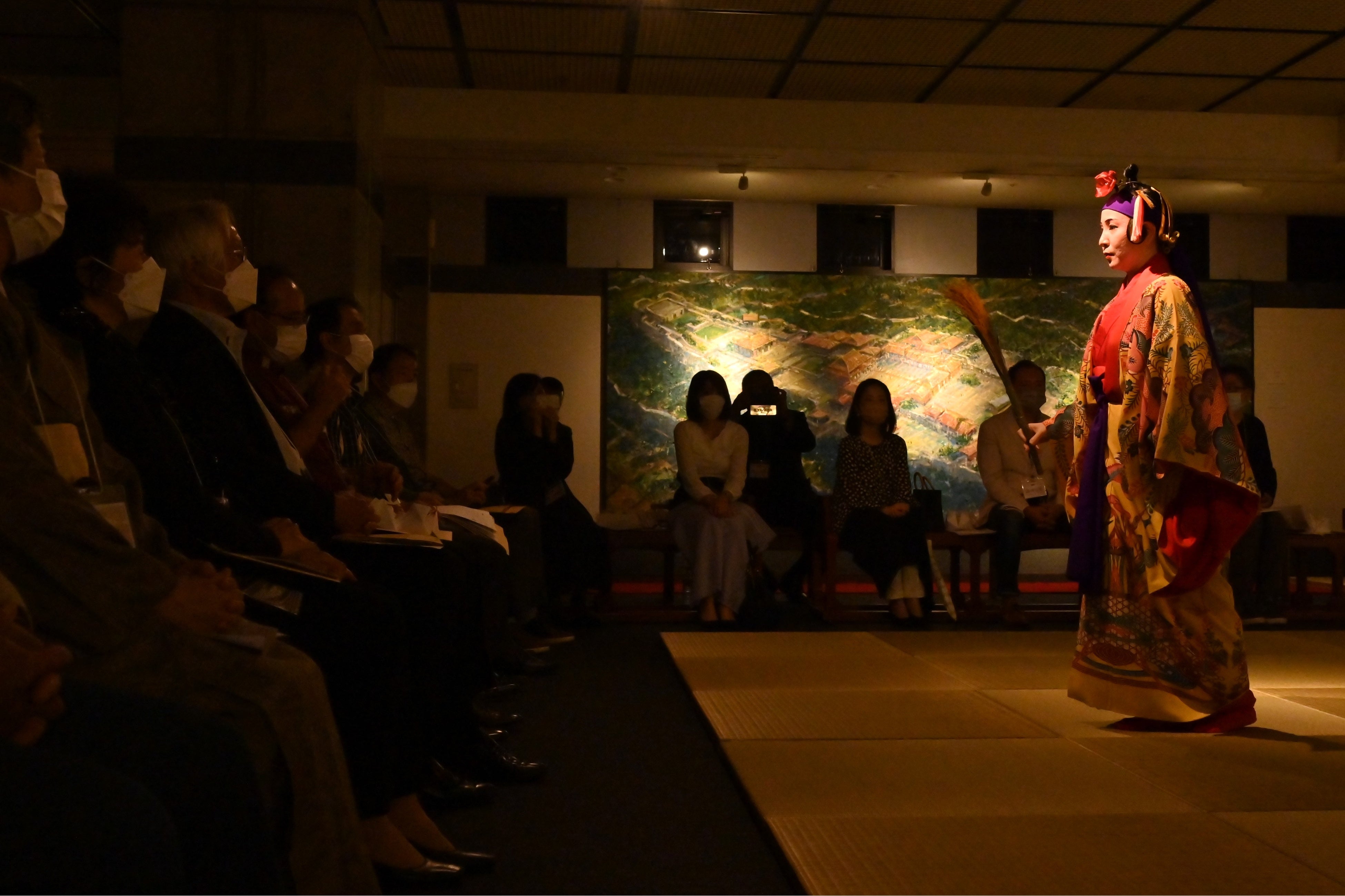 貴重な琉球ビーグ(い草)による舞台空間を創出し、琉球伝統芸能を間近で鑑賞いただく特別な機会です。琉球王国時代に構築された高貴な伝統文化・芸術の日本遺産解説と共に、首里城を感じつつ「ホンモノ」をお楽しみいただきます。(首里城復興祭関連イベント)