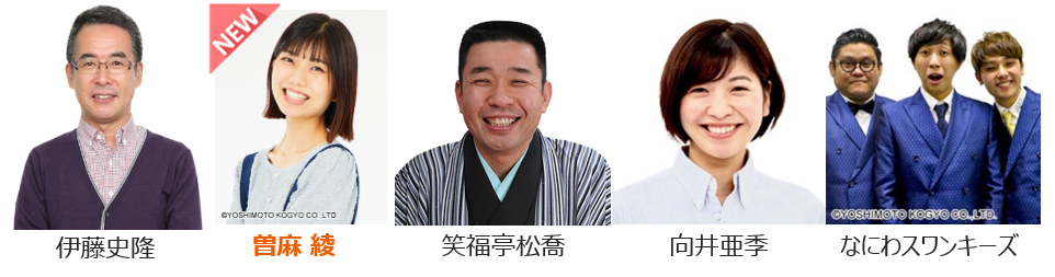 【出演者】  伊藤史隆  (火)曽麻 綾    (水)笑福亭松喬  (木)向井亜季    (金)なにわスワンキーズ