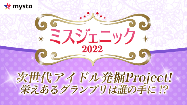 次世代を代表する「動画映えするアイドル」として、「高崎かなみ」などがグランプリを獲得し話題になったミスジェニック。合格者たちは地上波TV、雑誌掲載、デジタル写真集発売、楽曲配信やイベント出演など多岐にわたって活動し、多くのファンを魅了してきました。 今年で4回目となる2022年もミスジェニックオーディションを『mysta』にて開催いたします!