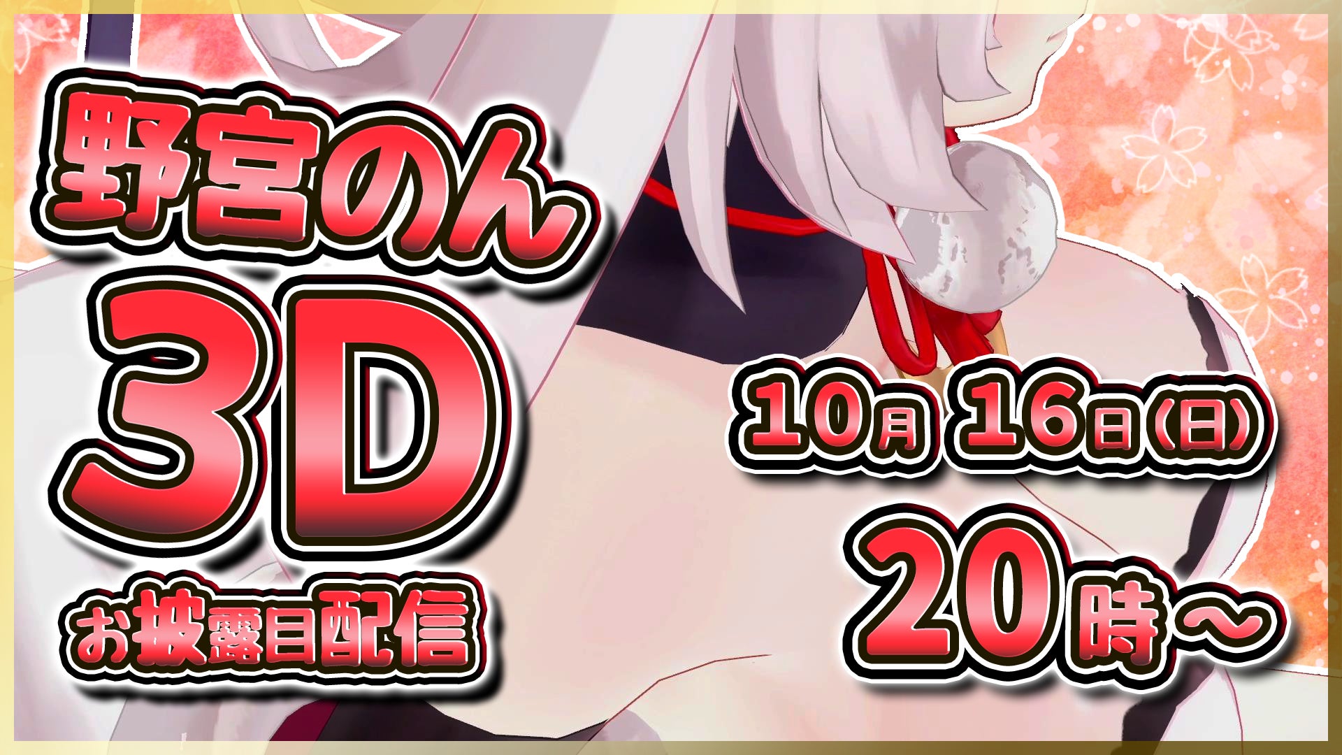 YAB EntertainMent合同会社は、弊社所属の「野宮のん」において、3Dモデルお披露目配信の実施をお知らせいたします。お披露目については、2022年10月16日(日)、本人のYouTubeチャンネルにて実施いたします。