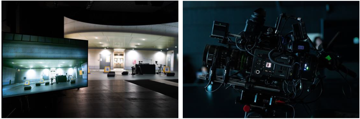 その中にあるVIRTUAL PRODUCTION STUDIOは、大型LEDディスプレイ、カメラトラッキングシステムを組み合わせた「バーチャルプロダクション」を基軸に運用がなされている。そしてスタジオの中で大きな存在感を放つLEDディスプレイに映し出される3DCG背景と、現実空間にいる被写体をリアルタイムで合成できる「In-Camera VFX」という手法によって、「バーチャルとリアル」「デジタルとアナログ」を瞬時に結合させた、新しいアートフォームを提示する。