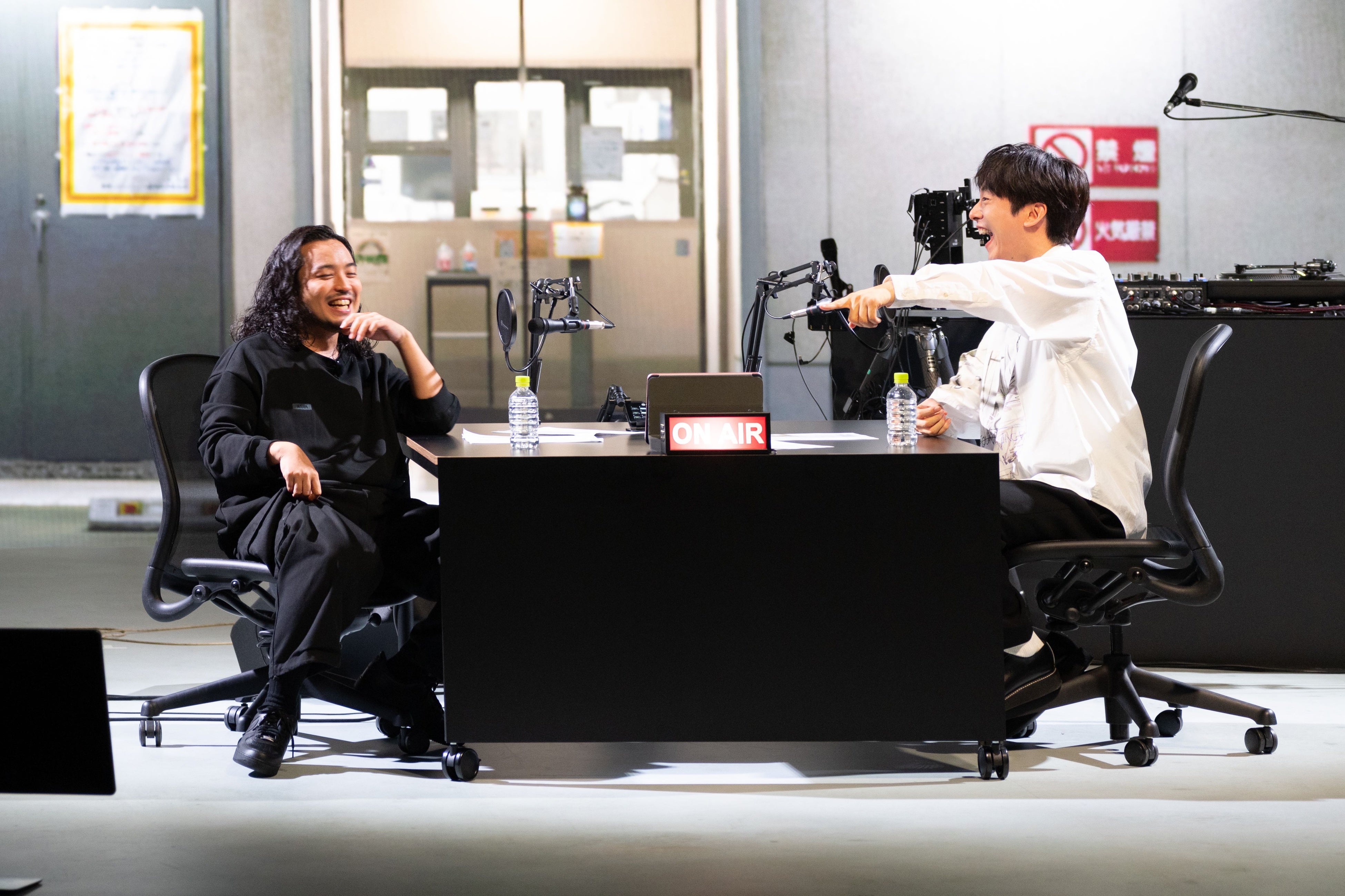 R-指定:とにかく映像が綺麗でしたね。背景の3DCGのニッポン放送と、実際に持ってきた現物の車止めが映像の中で一体化していて、モニターにはホンマに自分たちがそこにいるかのように映っていて驚きました。だからこそ、その世界に没入して歌うこともできて。ただ、そこで映し出されるのがニッポン放送の裏口というのは、僕ららしいのかなと(笑)。逆にいえば、あれぐらい地味な場所でも、すごくリアルに、精密に映せるということは、派手な場所だったらよりゴージャスに、寂しい場所ならより寂しくみたいな、ビジュアルとして刺激的なことが出来るんやろうな、と。