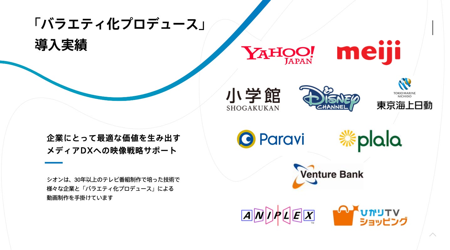 30年以上に渡り、数々の人気テレビ番組を制作する株式会社シオン(HP:https://sionnet.co.jp、本社:東京都千代田区、会長CEO:伊藤慎一、以下シオン)が、デジタル事業の新サービスとして、「バラエティ化プロデュース」動画制作サービスの提供を開始したことを発表させて頂きます。