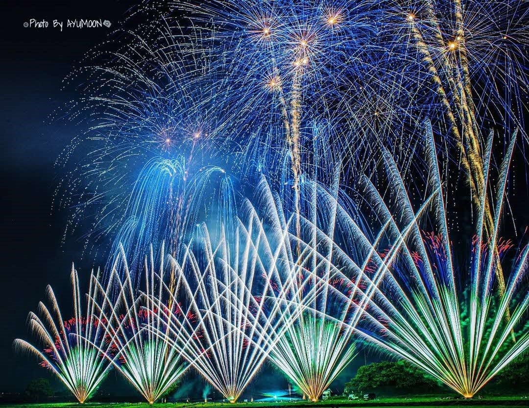 直方花火大会を実際に体験したからこそ感じた花火のダイナミックさがあらわれてて迫力強い素敵な写真と思います☺
