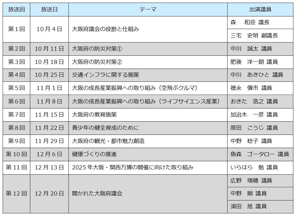 ■番組名:『宇賀なつみの大阪府議会プライム』