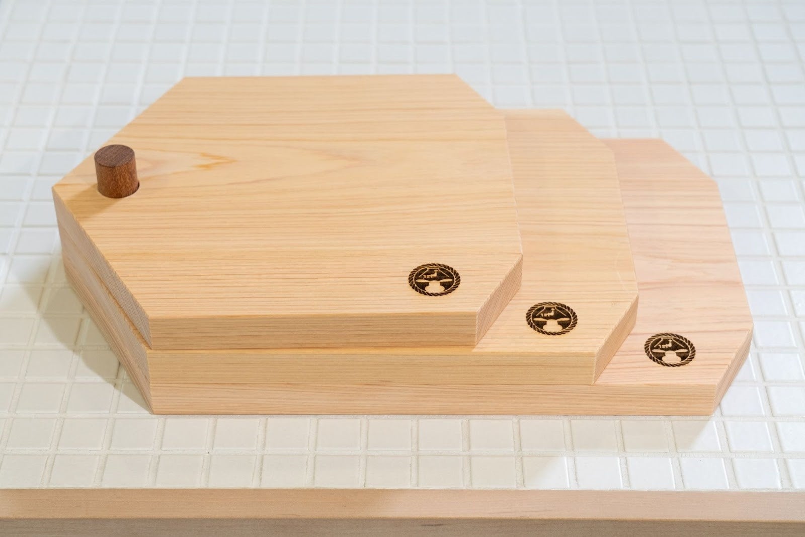 今回は番組リポーターの大久保ともゆき氏と番組コメンテーターの浅尾美和氏が、和歌山県湯浅町・創業92年の「尾崎家具装飾株式会社」と共に、今までにない究極のまな板づくりに挑戦。大久保氏の「まな板を重ねたい」といったアイデアや、料理をするのが大好きだという浅尾氏の「取っ手がほしい」といった意見を詰め込み、「キッチン時間がもっと楽しくなる」紀州ヒノキのまな板2種類が完成しました。