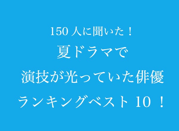 2022年の夏を盛り上げたドラマの数々。あなたは何作品チェックしていましたか?今回TVマガでは、「夏ドラマで演技が光っていた俳優」について150人にアンケートを取りました。ランキング形式で出演作品と選んだ理由をご紹介します。