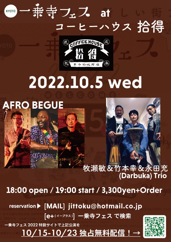 会場:京都 一乗寺エリア6会場、名古屋 今池 得三、高円寺 Live Music JIROKICHI、
