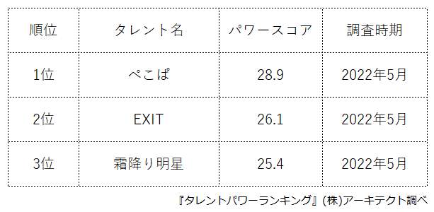 ○引用元が「株式会社アーキテクト」「タレントパワーランキング」である旨を明記