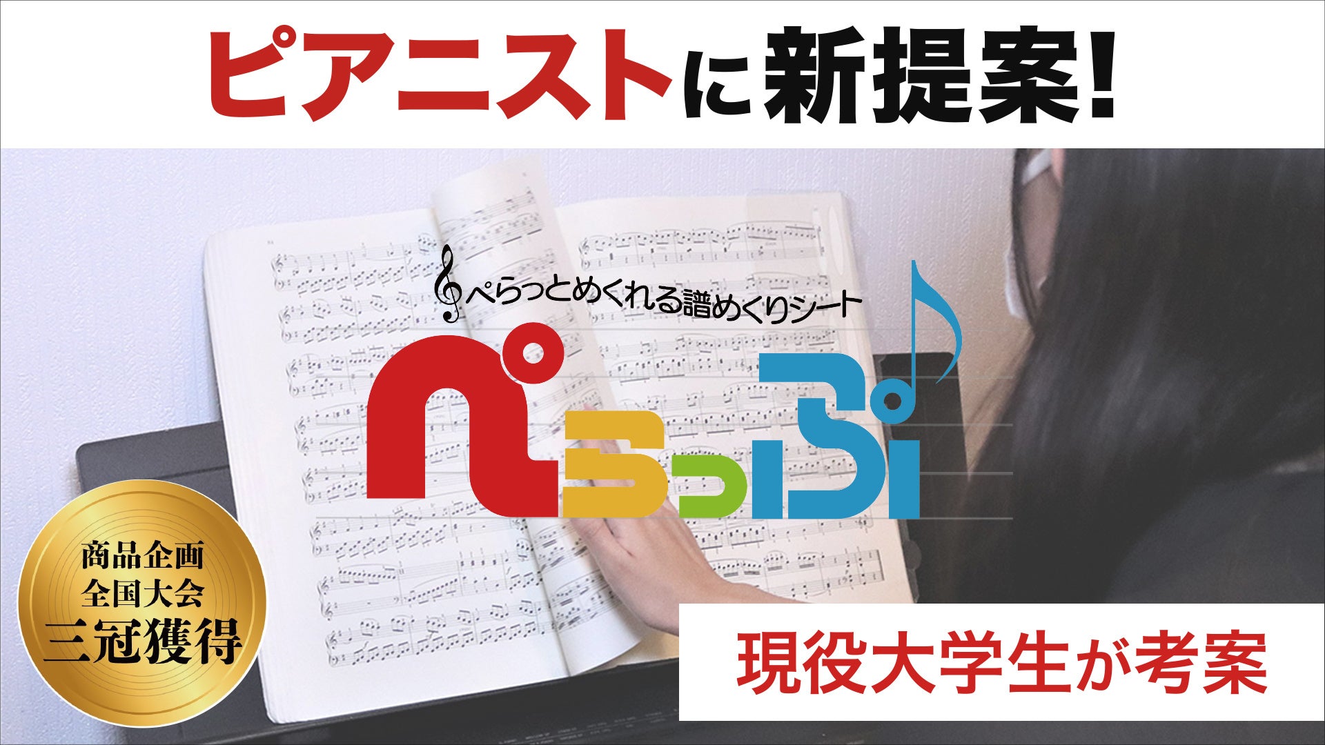 「ぺらっぷ」は、“楽器を演奏しながら楽譜をめくるのは難しい”と感じる楽器経験者メンバーをはじめ、数々のピアノ経験者が抱える譜めくりの難しさに着眼し、もっと楽譜を簡単にめくるためのサポート商品が作れないかと考え、開発されました。