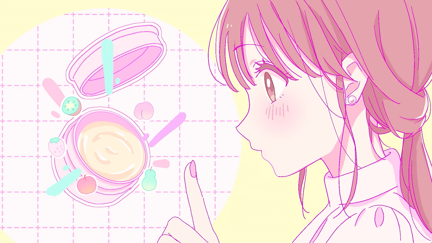 プロダクトのイメージや商品コンセプト、そして楽曲からインスピレーションを受け、みずみずしくもどこかあたたかく感じる抽象的な世界に潜り込んでいくさまをイメージしました。水中にいるかのような泡の表現や流体のような抽象表現、ピンクやオレンジといった暖色を取り入れることでそれらを表現しています。