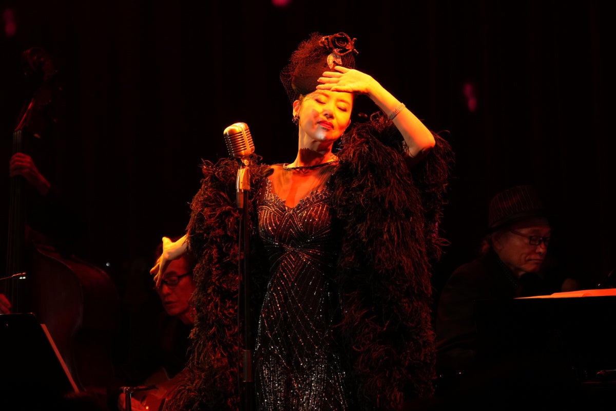 この日のために結成されたスペシャルバンドによる「Billy Boy」の演奏のが終わると、大胆なスリットの入った黒いドレスに着替えて再び登場。ここからは、ビルボードライブならではのJAZZパートへ。