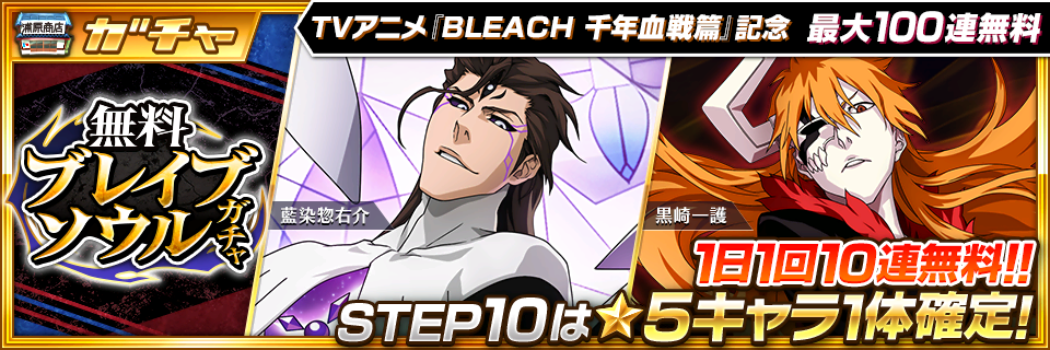 ■TVアニメ『BLEACH 千年血戦篇』記念無料ブレイブソウルガチャ