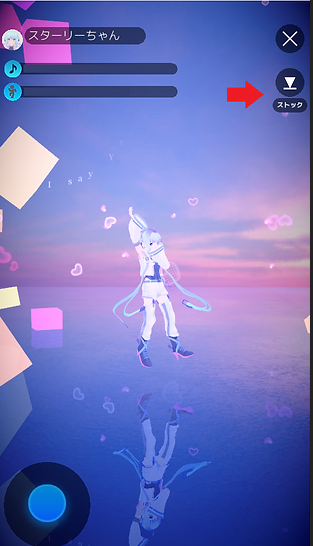 右上のUIよりストックをすることにより、バーチャルライブでの使用が可能になります。