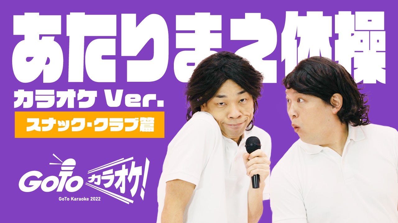 「あたりまえ体操」は楽しげなピアノの伴奏に乗せて、当たり前なことを体操にアレンジして披露するお笑いコンビ「COWCOW」の人気持ちネタです。今回は、この「あたりまえ体操」とカラオケがコラボレーション!プロモーションサイトでは「カラオケボックス篇」と「スナック・クラブ篇」の2種類で展開します、 「COWCOW」によって面白おかしく表現されたカラオケのあるあるをお楽しみください。また、店頭だけの「あたりまえ体操~カラオケver~ 15秒PR動画」もご用意しております、店頭へお越しの際は是非ご覧ください。