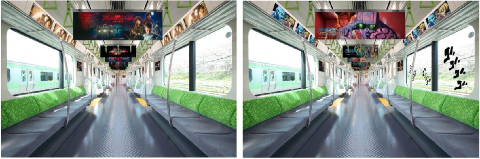 ・人気Netflix作品の世界観をお楽しみいただける空間を各号車に再現。作品世界に入り込んだような乗車体験をお届けします。各車両での紹介作品は以下をご確認ください。