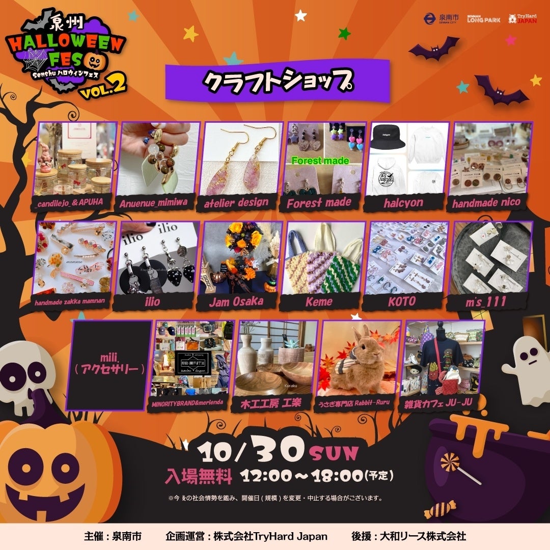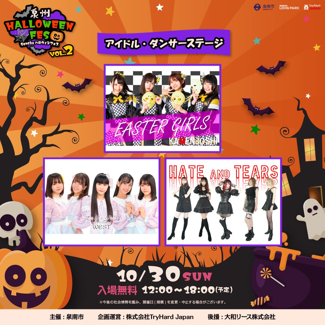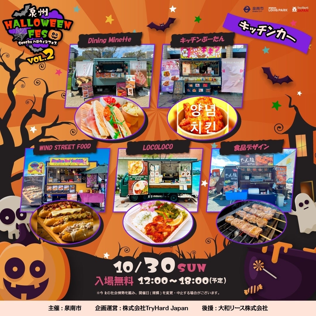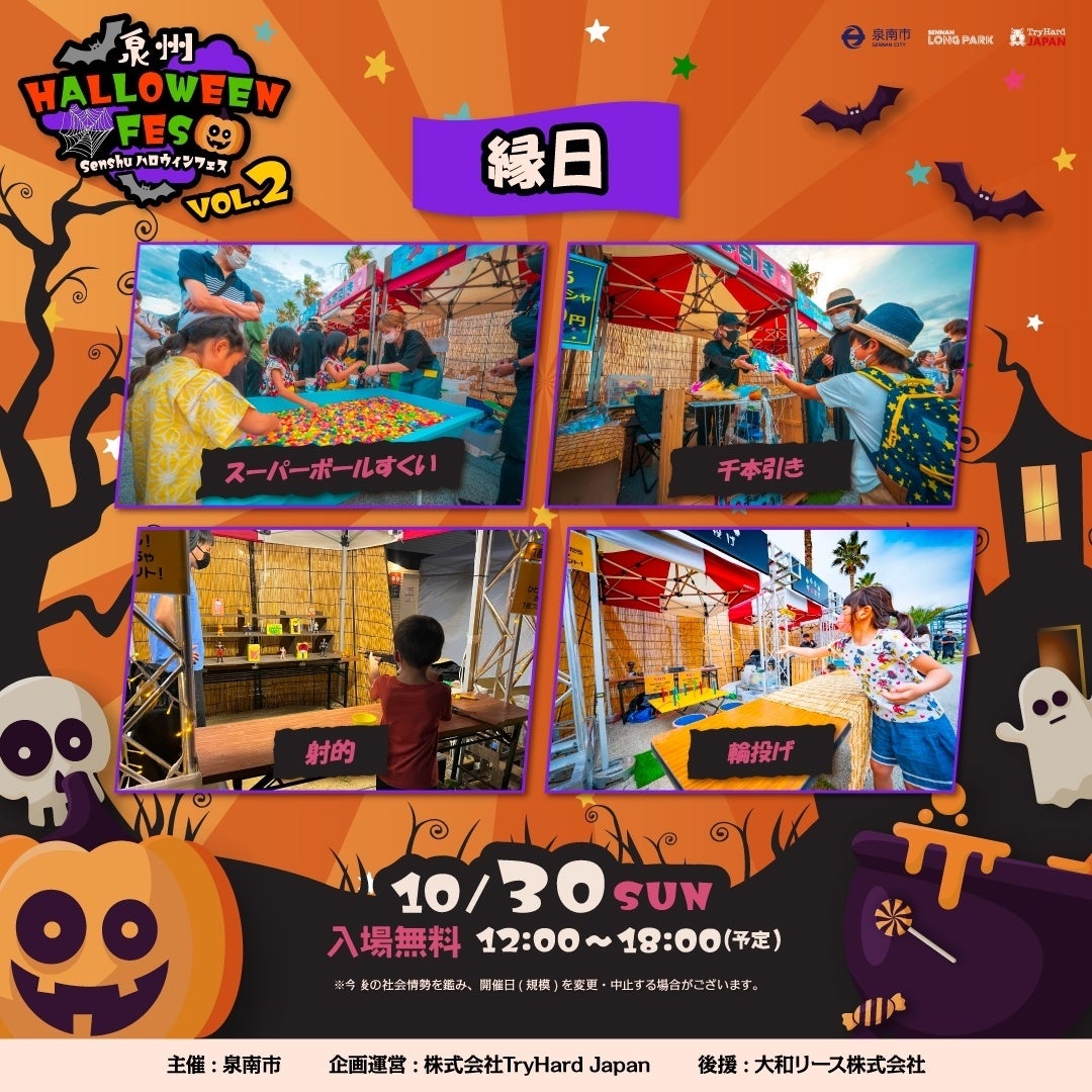 大阪府泉南市と株式会社トライハードジャパン(所在地:大阪市中央区)は、2022年10月30日(日)SENNAN LONG PARK(所在地:大阪府泉南市)にて、昨年好評を博した「泉州ハロウィンフェス」を開催いたします。