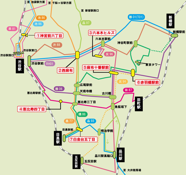 ⑦白金台五丁目(黒77、橋86、品93系統)