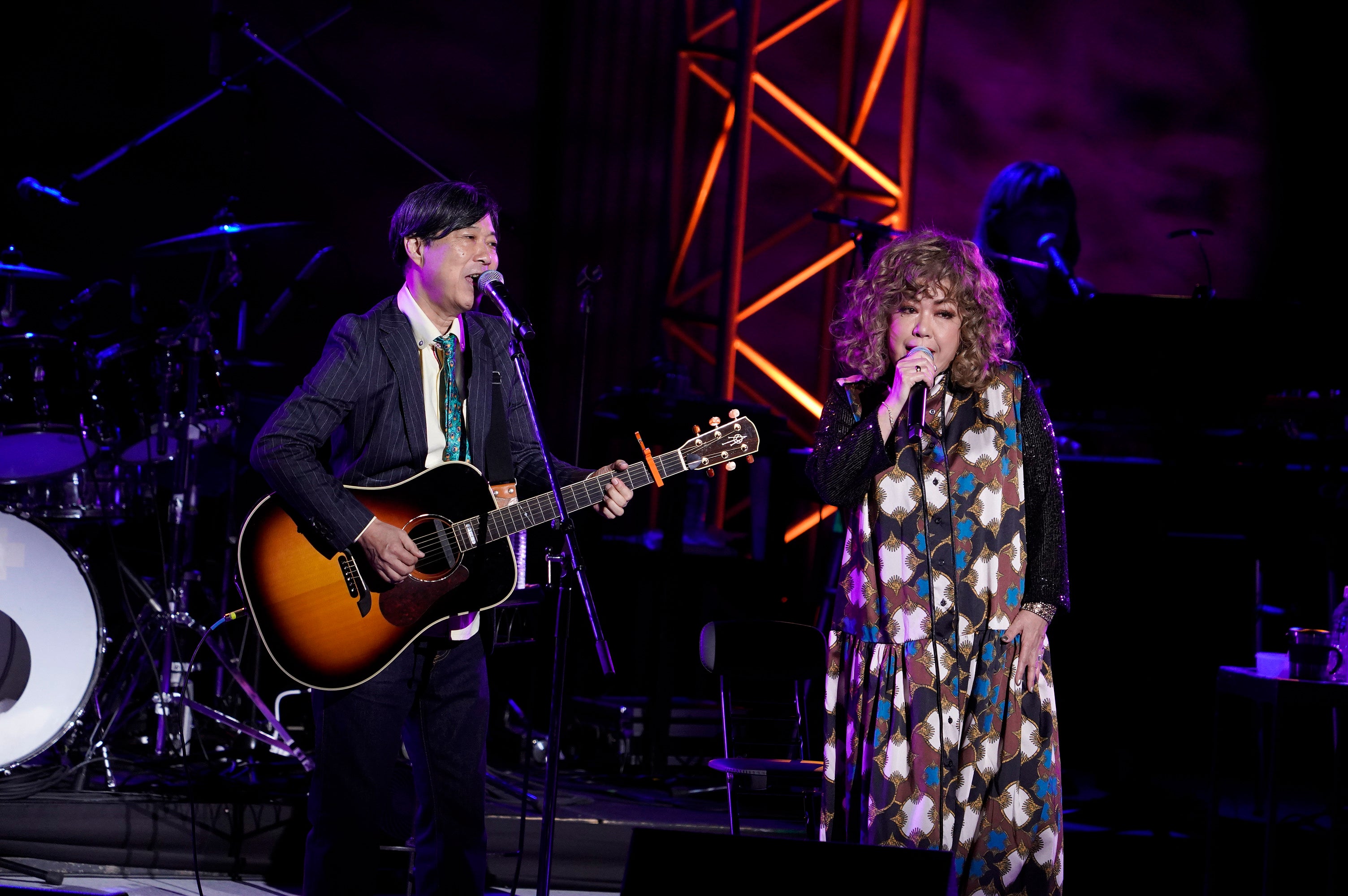 5曲目から続々とゲストが登場。まずは杉真理。彼も今年デビュー45周年を迎え、11月に発売予定の作品集CDにも収録される代表的作品「ウイスキーがお好きでしょ」、「Precious Friend」の2曲をコラボレーション。二人の声の波長が絶妙にマッチし、心地よい大人のデュエットとなった。