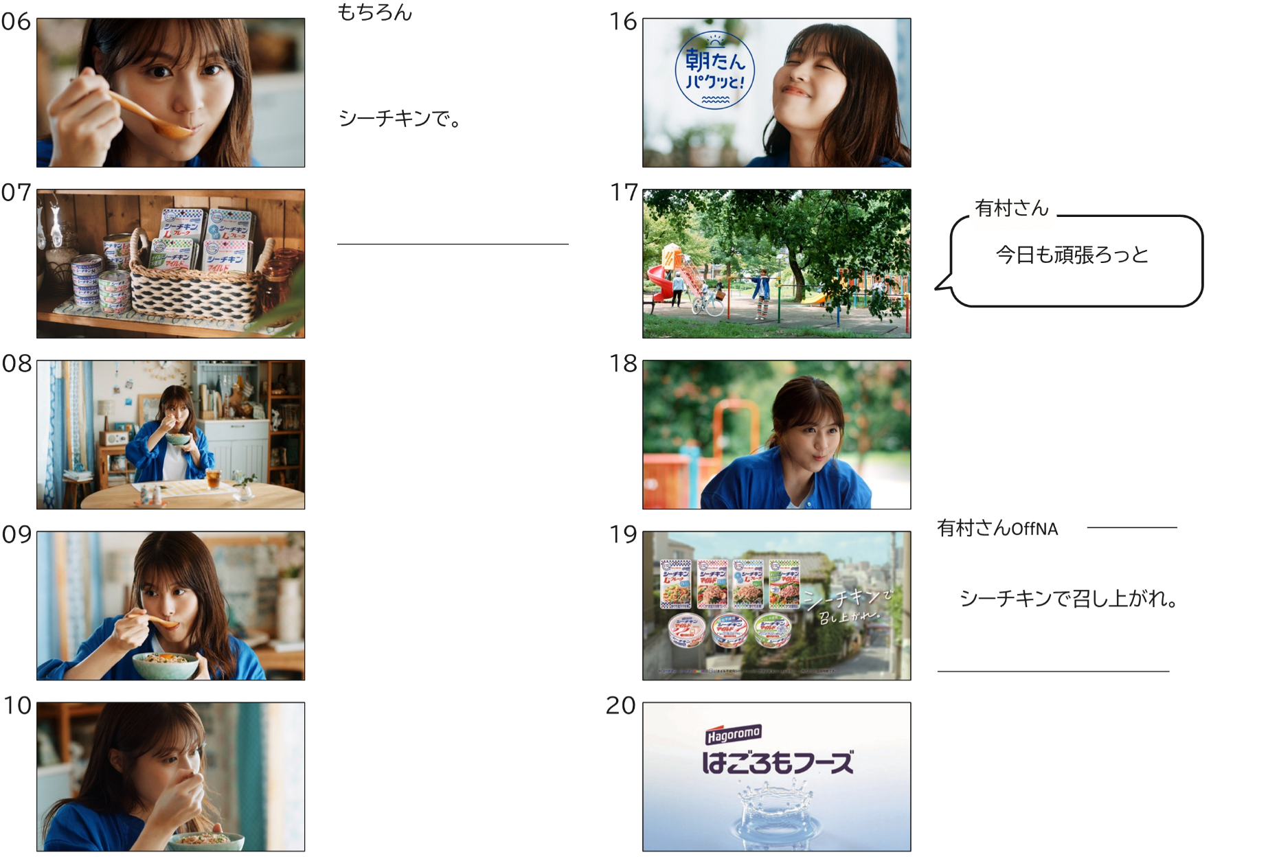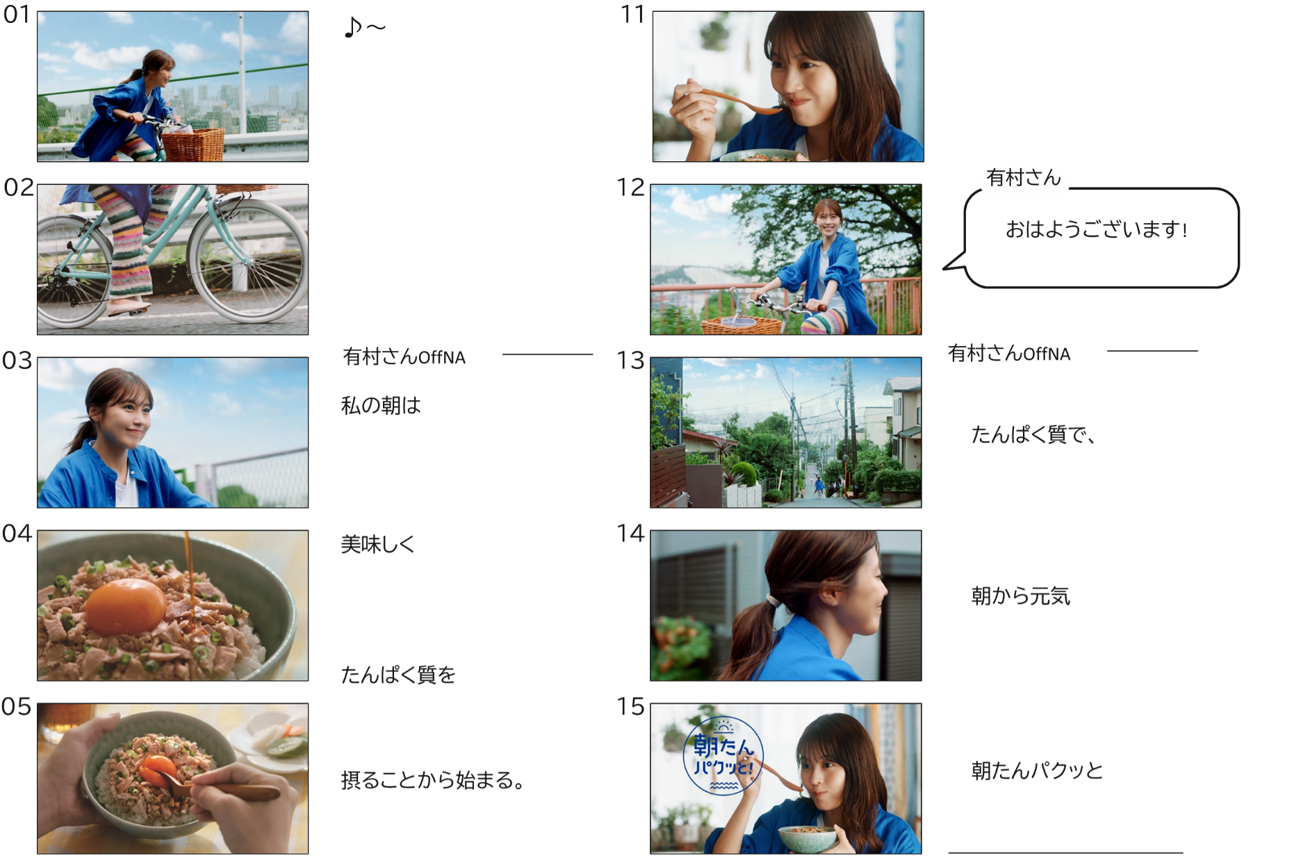 今回の作品は、朝食からシーチキンごはんでたんぱく質を摂る”朝たん”がテーマにっています。CMを撮りながら、私もパクパクと食べさせていただき、とてもおいしかったです。