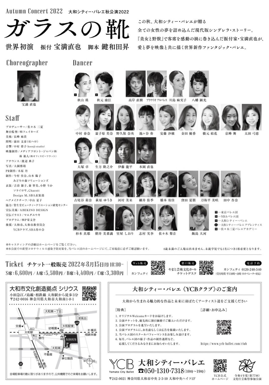 ⼤和シティー・バレエ(主宰:佐々木三夏)主催、Autumn Concert 2022『ガラスの靴』が2022年10月30日 (日)に大和市文化創造拠点シリウス 芸術文化ホール メインホール(神奈川県大和市大和南1丁目8番1号)にて上演されます。
