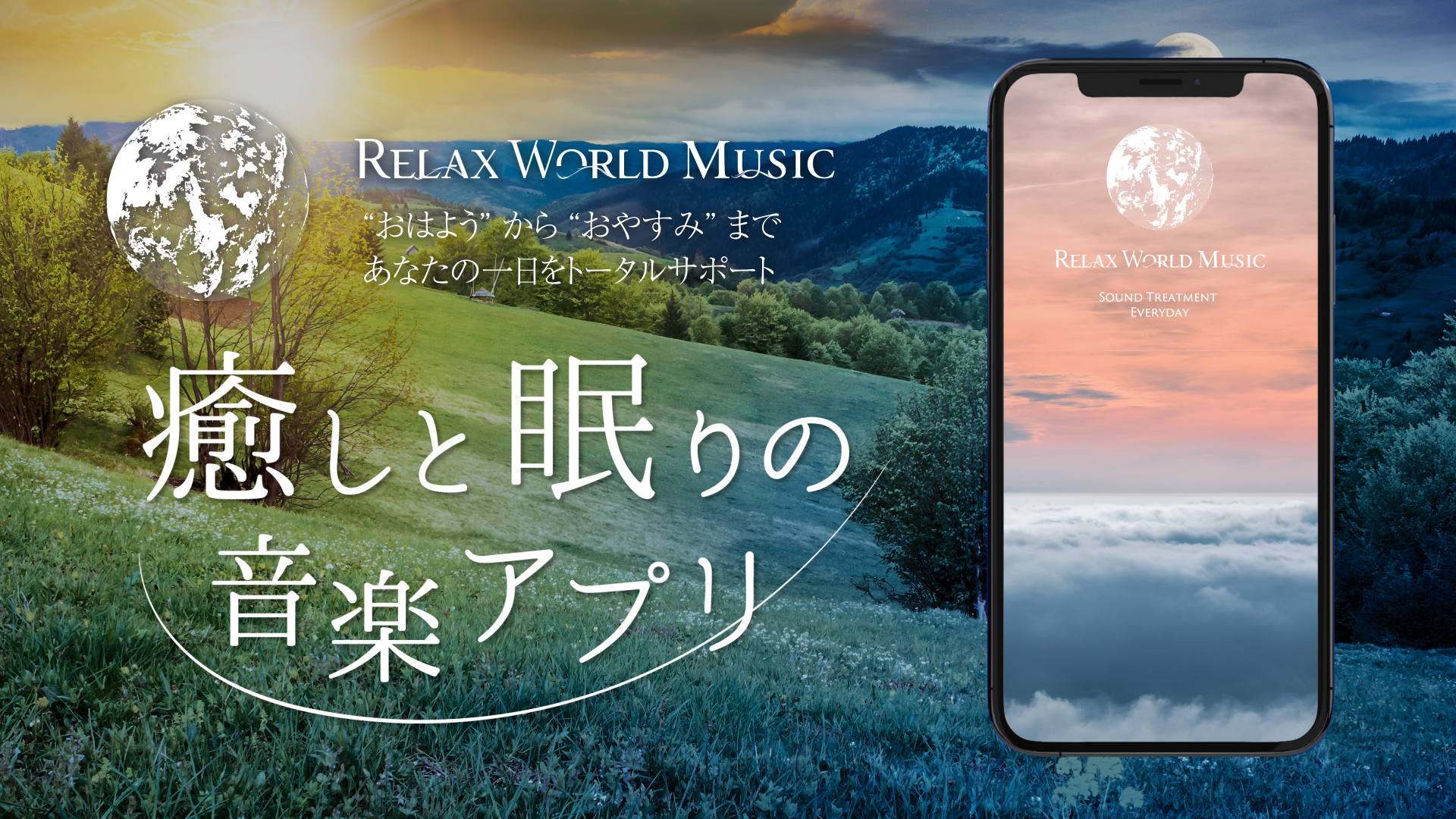 App Store:https://apps.apple.com/jp/app/relax-world-music/id1625288412[App Store QR] App Store QRGoogle Play:https://play.google.com/store/apps/details?id=asia.croix.app.relaxworld[Google Play QR] Google Play QR 推奨OS:iOS/13.0以上、Android/10.0以上