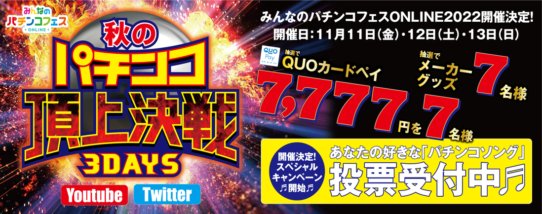 - 「みんなのパチンコフェスONLINE2022 秋のパチンコ頂上決戦 3DAYS」開催概要