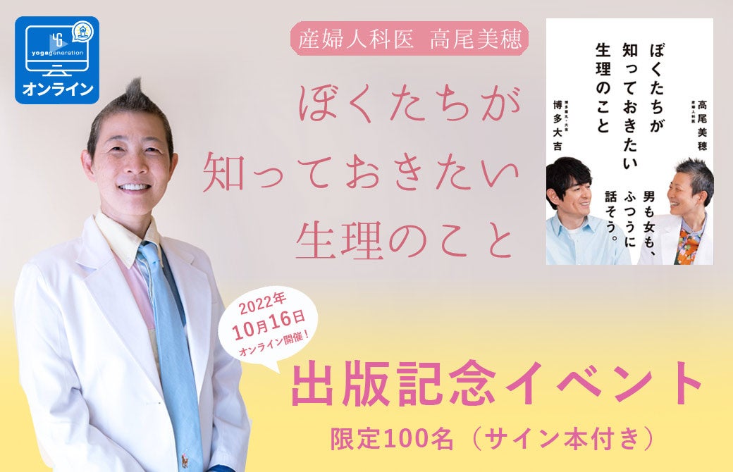博多大吉さんと産婦人科医 高尾美穂先生が「生理」について語り合う書籍『ぼくたちが知っておきたい生理のこと』が10月7日に発売となりました。高尾美穂先生が本に込めた思いを語る出版記念イベント(定員100名)も開催されます。