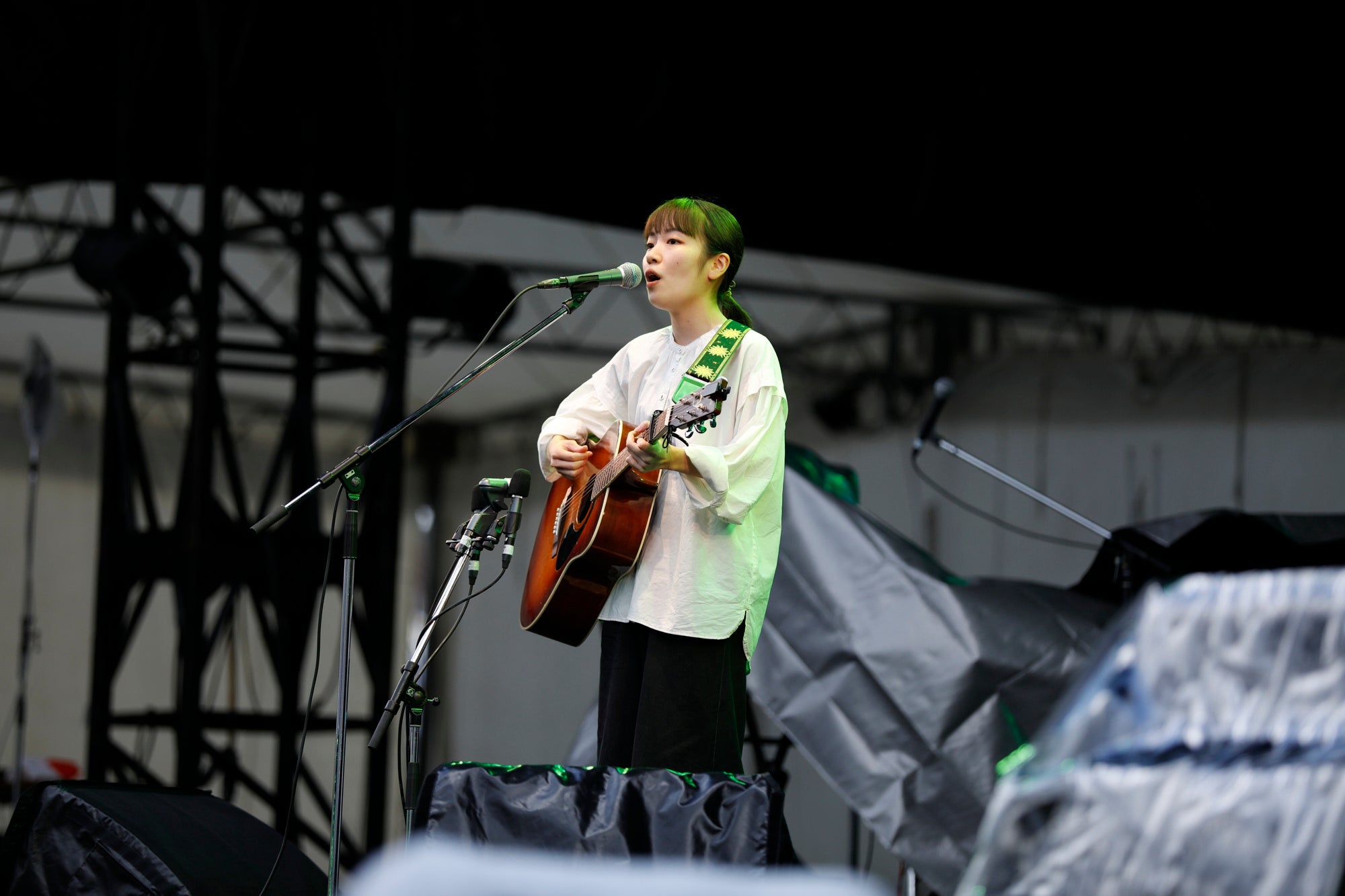 2日目の『米フェス』は、米フェスが主催するオーディション『COME100オーディション’22』の準グランプリに輝く八生(やよい)のオープニングアクトで幕を開けました。ギター1本で弾き語りする女性シンガーである彼女の独特な歌声と歌詞の世界観が審査員の高い評価を得て受賞が決まった。演奏曲は「翡翠」と「泳げぬ鯨」。