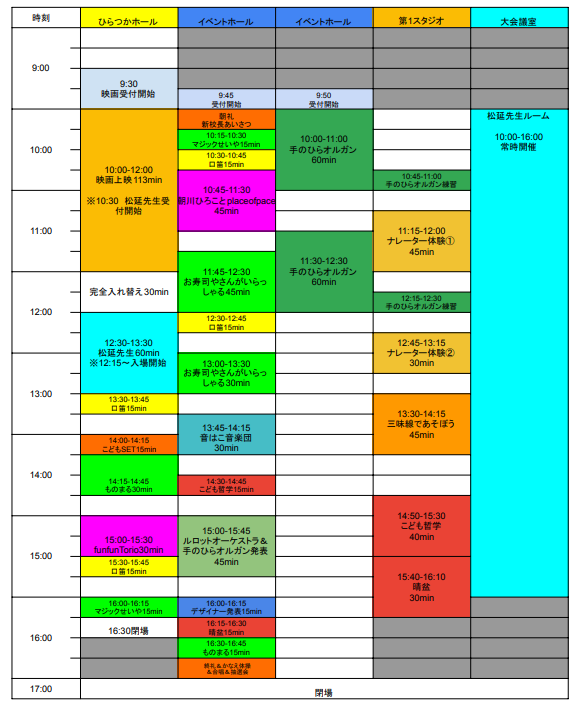 ※当日参加・途中入退場可、事前予約や当日に参加券配布のコンテンツ有