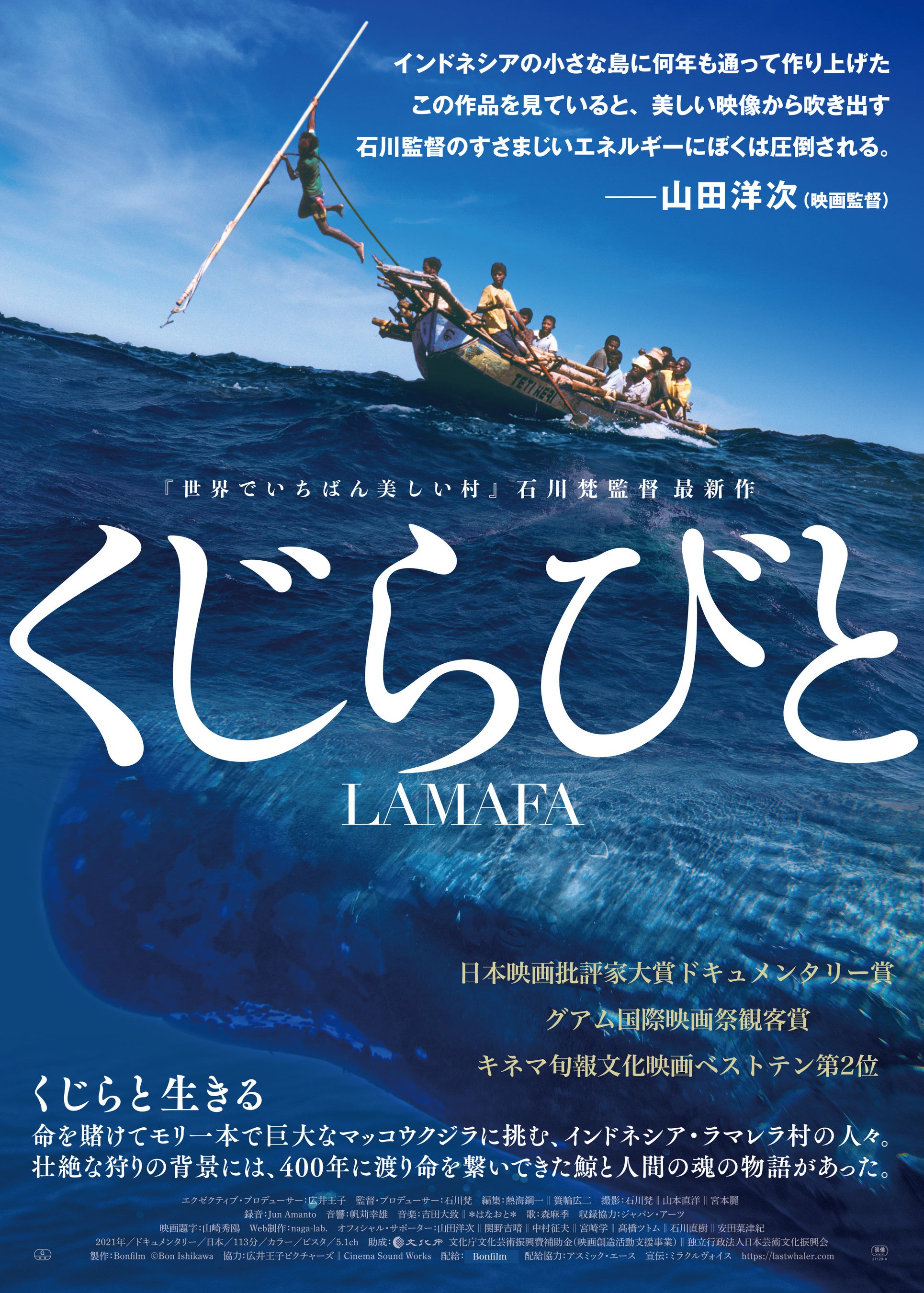 映画「くじらびと」はインドネシアの伝統捕鯨を描いたドキュメンタリー映画です。捕鯨を営むラマレラ村はもう400年以上も鯨を捕って生活しています。モリ一本で巨大なマッコウクジラに挑む勇壮な鯨漁ですが、実は作物が実らないやせた土地に住む村人にとって鯨は命をつなぐ大事な存在でもあります。