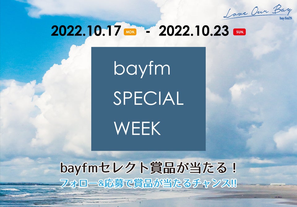 対象のSNSをフォロー&応募でbayfmセレクト商品が当たるチャンス!さらに、期間中各番組ゲスト、プレゼントなどスペシャル企画も盛りだくさん!!