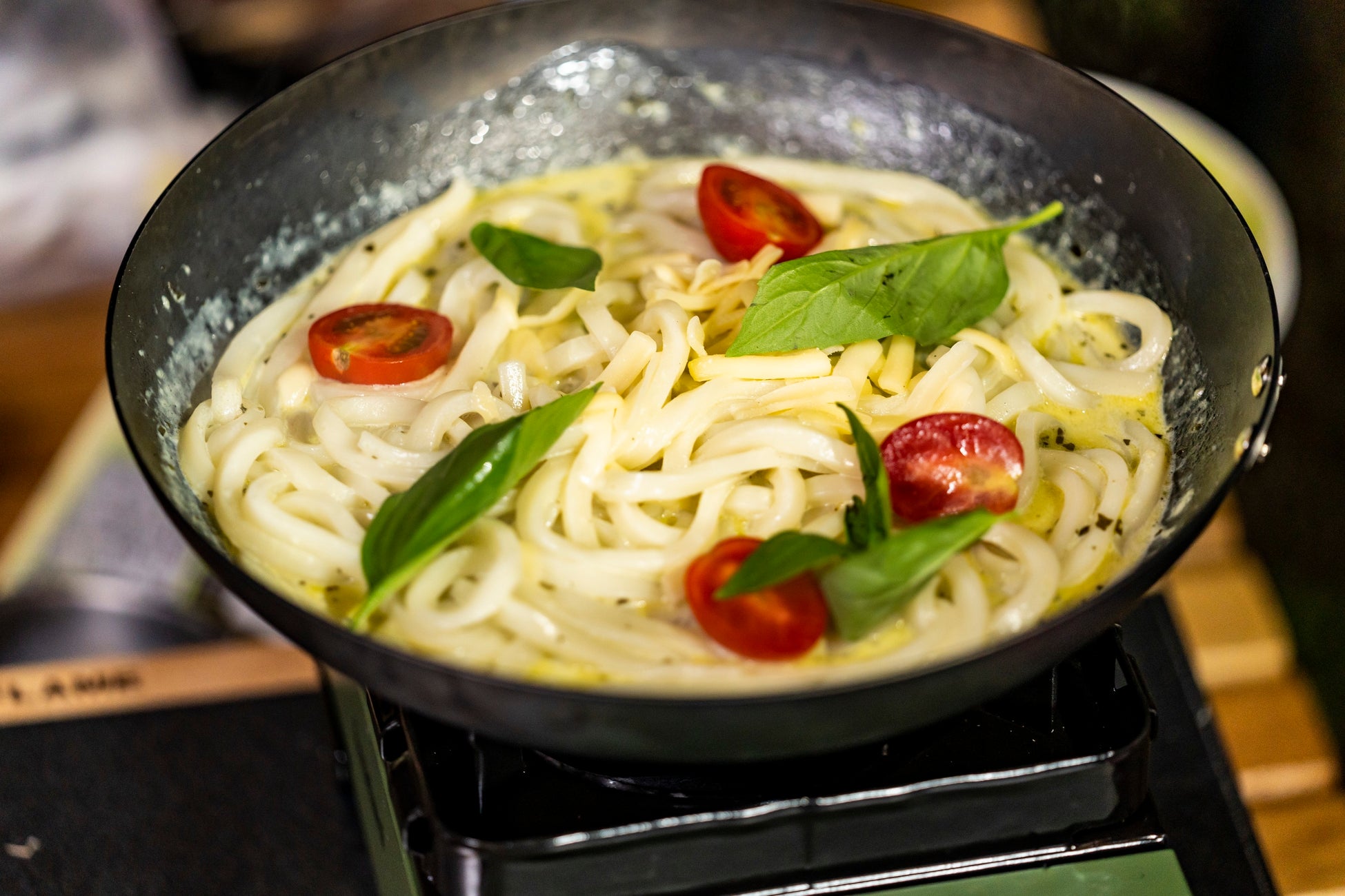 今回の夕食は、おぎやはぎと徳井が「女性に食べさせたい料理」をテーマにそれぞれ作り、どれが一番良かったか村重に判定してもらう対決を行うことに。『24歳の女の子を喜ばせるなんて簡単!』と豪語する矢作は、自慢の「バジルクリームうどん」を披露。その見た目の美しさに、『女心知りすぎだよ~!』と焦る小木。果たして、勝負の行方やいかに?
