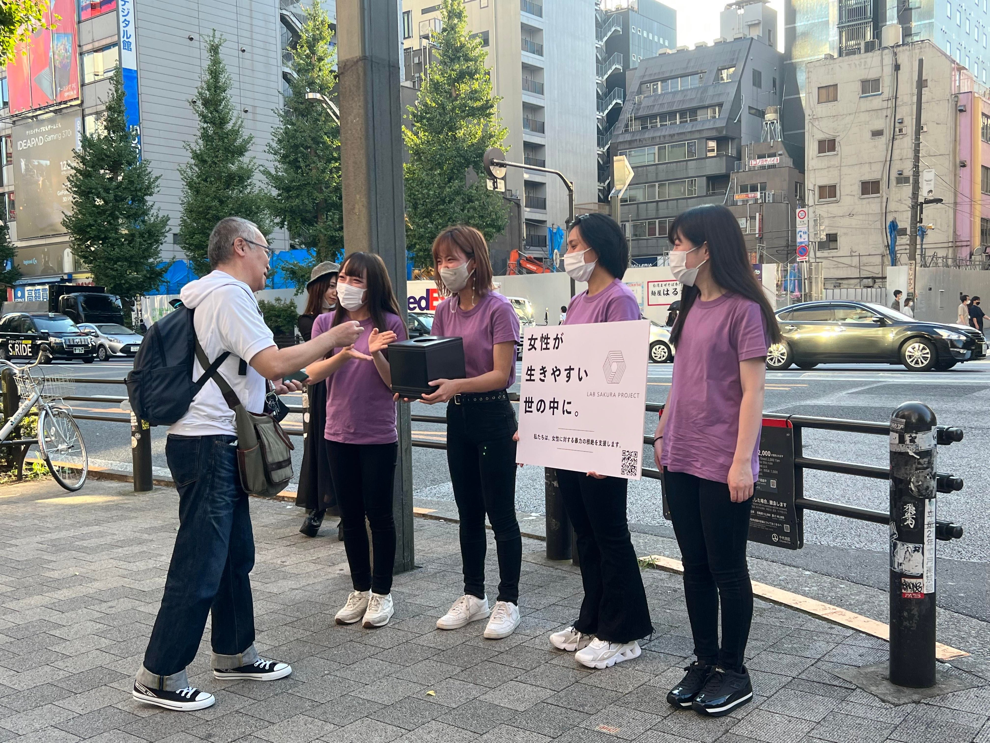 女性が安心して活躍できる環境を推進する活動として、メンバーによる街頭啓蒙活動・募金活動を行っています。