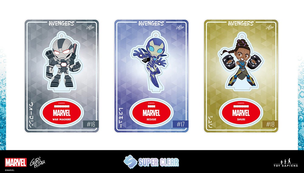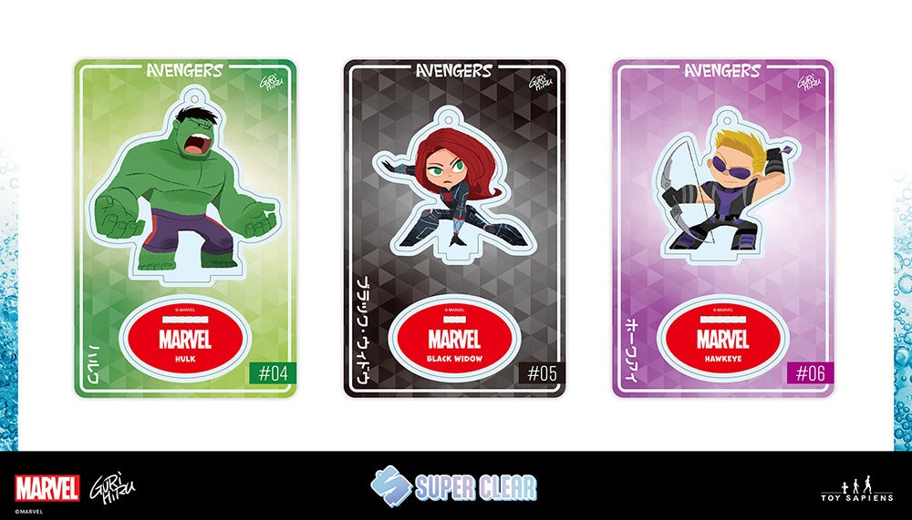「グリヒル」アートのマーベルキャラがアッセンブル!楽しみ方は1枚で3通り。カード、フィギュア、キーチェーンの3WAYアクリル「スーパークリア」登場!