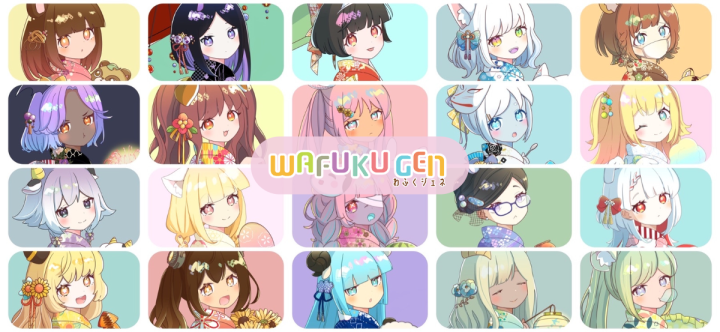 「わふくジェネ」は、アートクリエイター『WAFUKU』と、音楽クリエイター『yokodori』が作る、11,111点の音楽付きNFTコレクションです。日本NFT業界の最前線で活躍するアーティストたちと連携したコラボNFTも発行。「わふくジェネ」は、個人がNFTを通して自由に表現を楽しむことを応援します。
