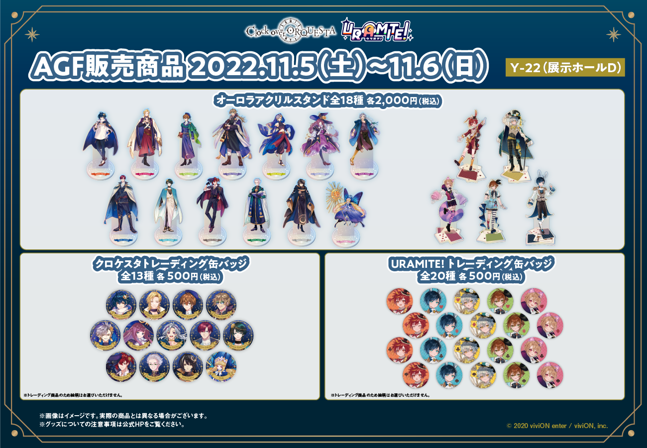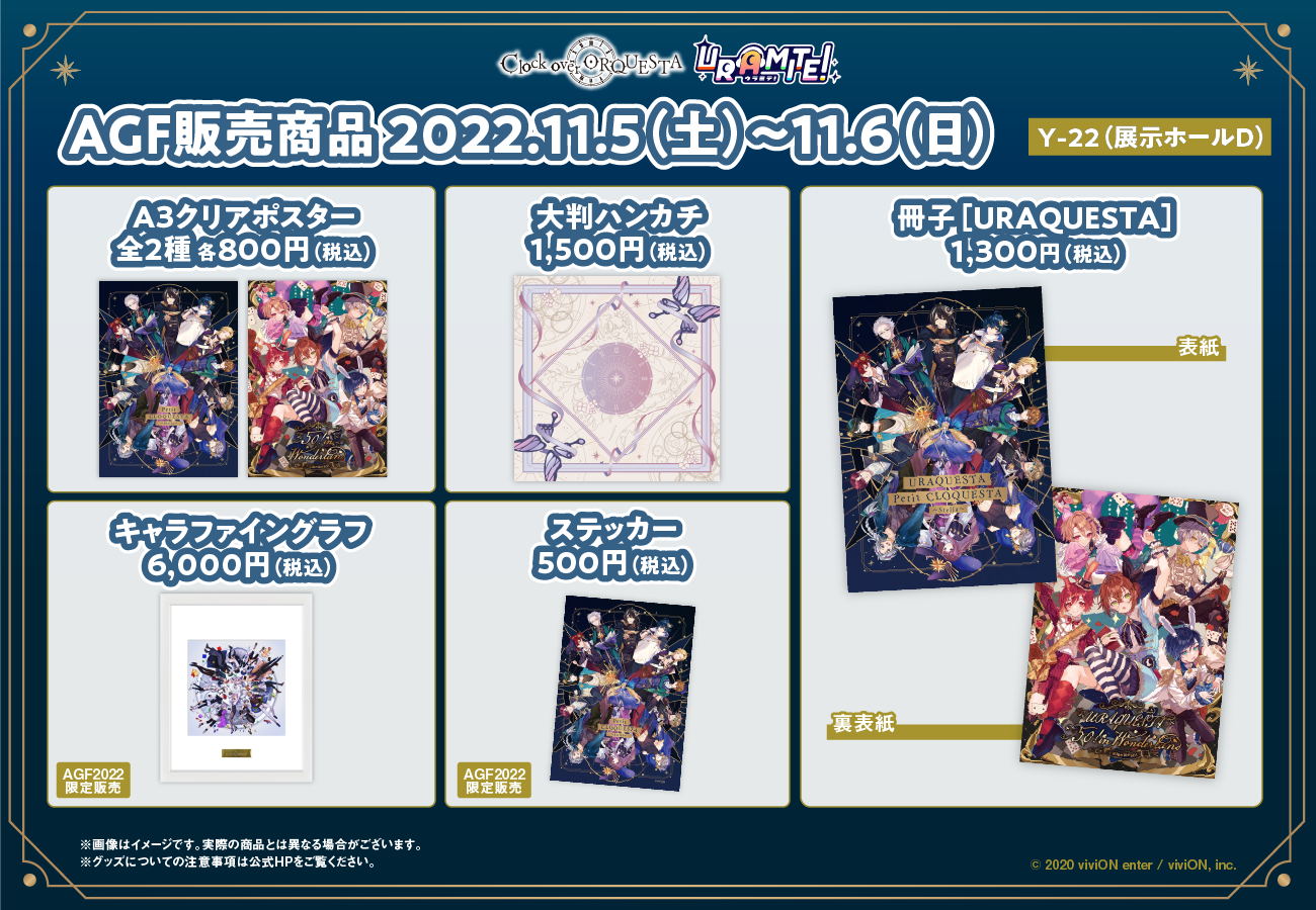 ※ AGF2022におけるグッズ販売、及び投票券についての注意事項がございます。詳しくは公式サイト( https://clockoverorquesta.com/news/2491/ )をご確認ください。
