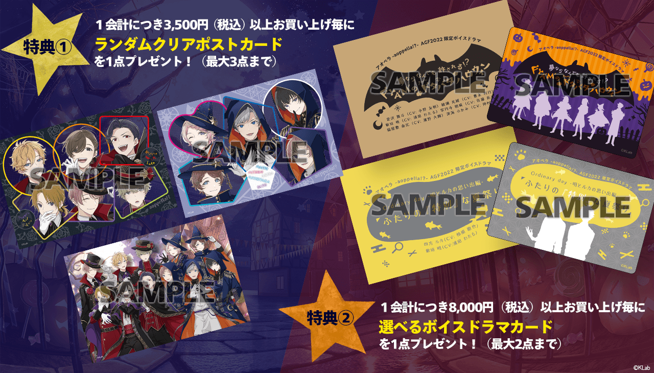 ※クリアポストカード、オリジナルボイスドラマカードは、AGF2022開催後に開始する予定の通信販売でも購入特典としてプレゼントする予定です。