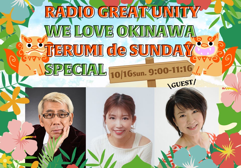 ラジオ局・bayfmは、10月16日(日)に毎週日曜日朝9時から放送中の『TERUMI de SUNDAY!』(通称・テルサン)の特別編として、『RADIO GREAT UNITY WE LOVE OKINAWA~TERUMI de SUNDAY SPECIAL~おきなわ彩発見NEXT』を放送!
