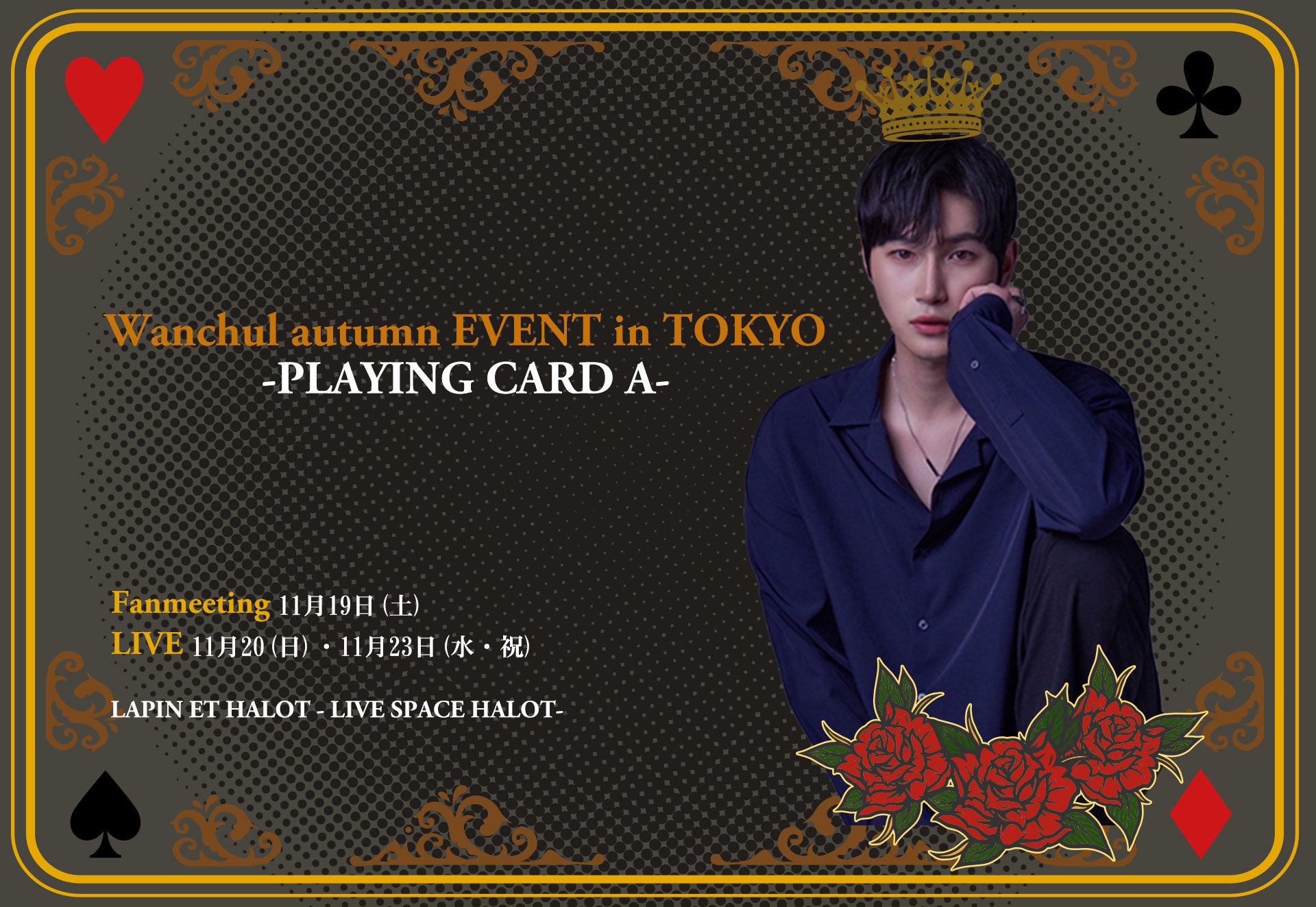 3Daysで開催される今回のイベントタイトルは、【Wanchul autumn EVENT 3days in TOKYO -PLAYING CARD A⁻】 PLAYING CARD(トランプ)のA。常にエースで、1番のワンチョルの最高の6ステージをお贈りします!