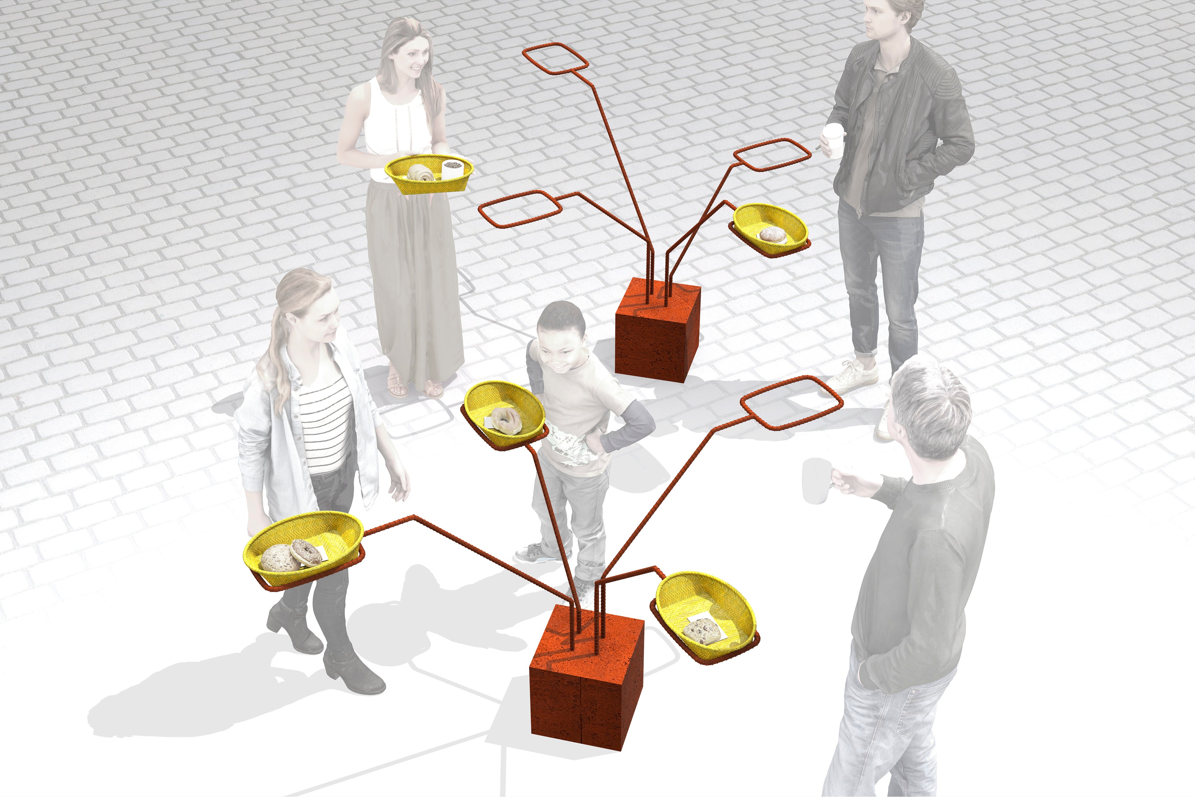 アーティストやクリエーターの方々がデザインしたアートテーブルを歩行者空間の「キング軸」に置くことで、周辺の企業、店舗、学校、来街者をつなぎます。「BankART1929」による企画