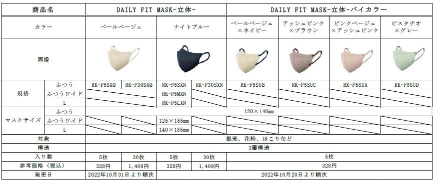 ■「DAILY FIT MASK-立体-」「美フィットマスク」、新色・バイカラー順次発売