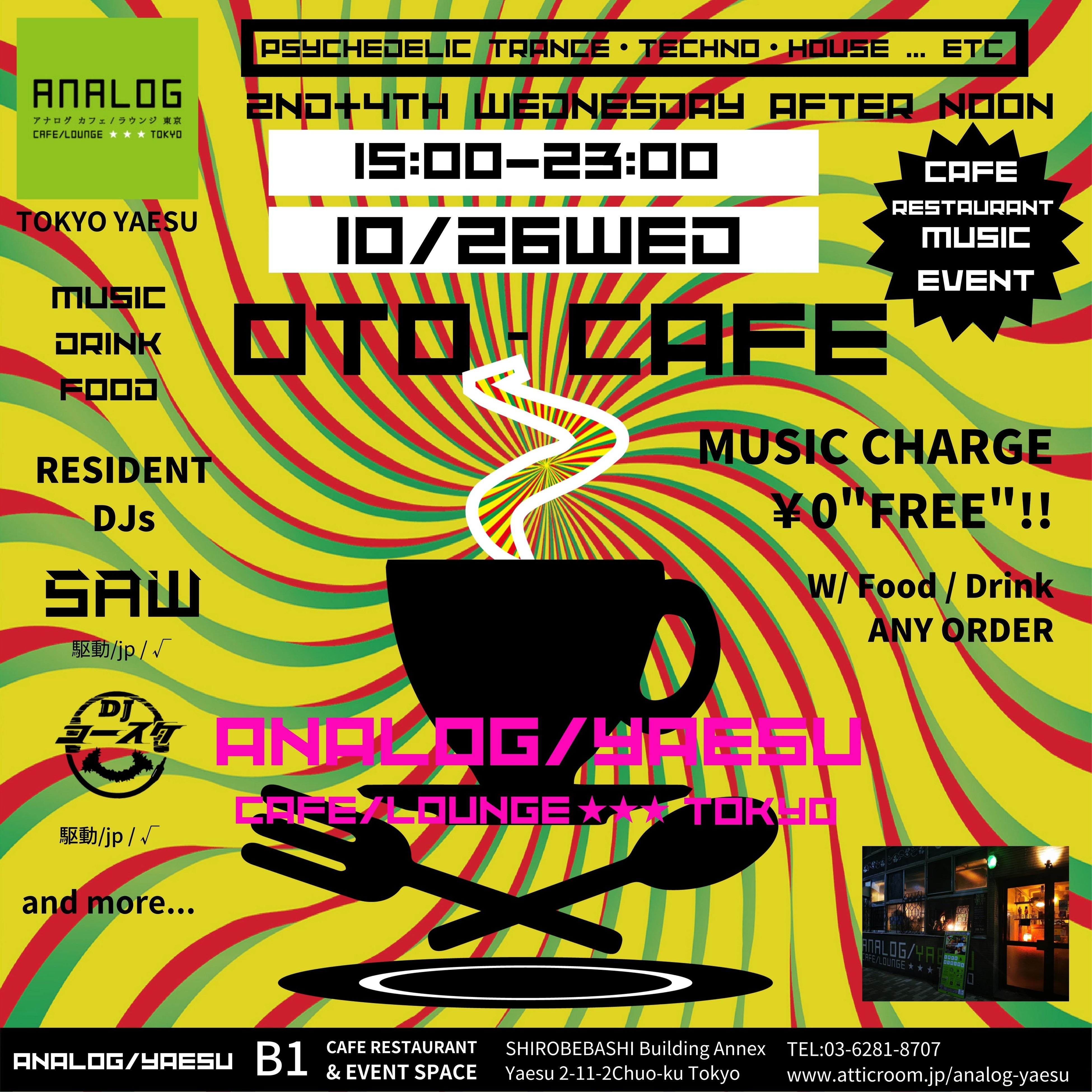 “ あのシャレ飯屋がCLUBに ” MUSIC×DRINK×FOOD を楽しむイベント【OTO-CAFÉ】毎月2,4th 水 ANALOG YAESU にて開始 。Vol.2 10/26WED