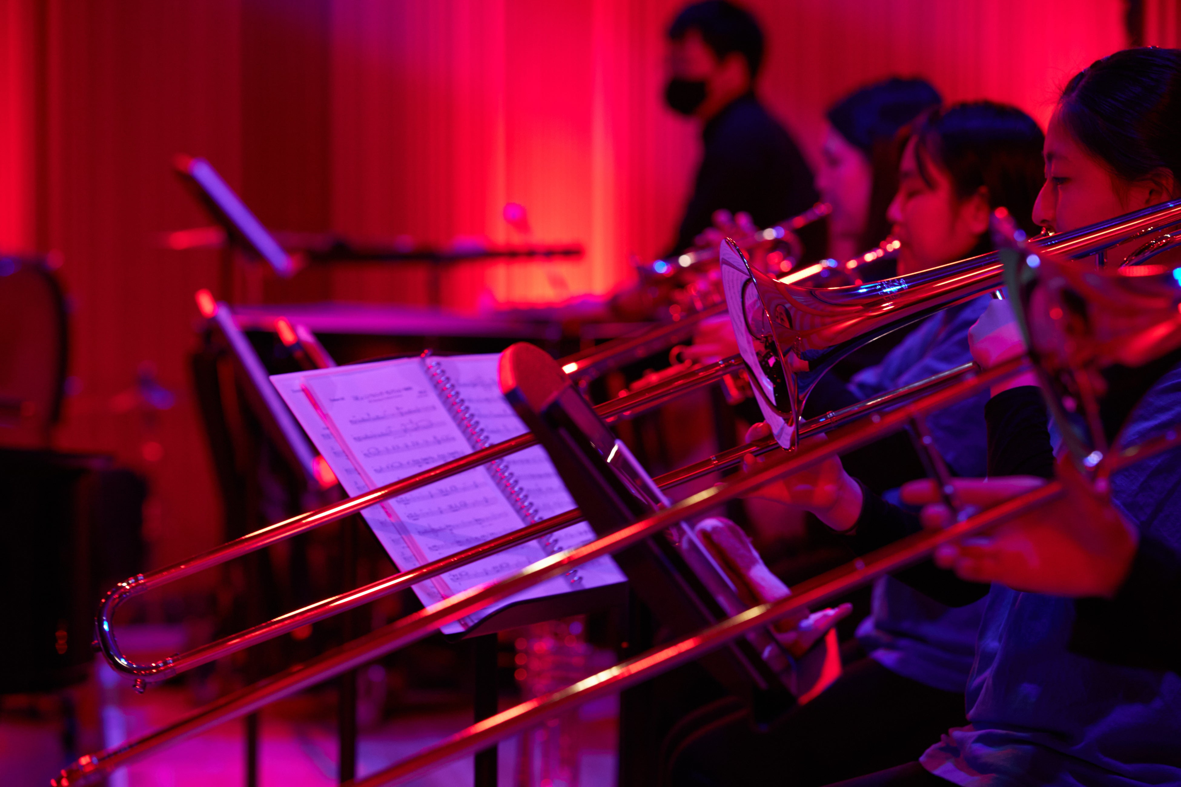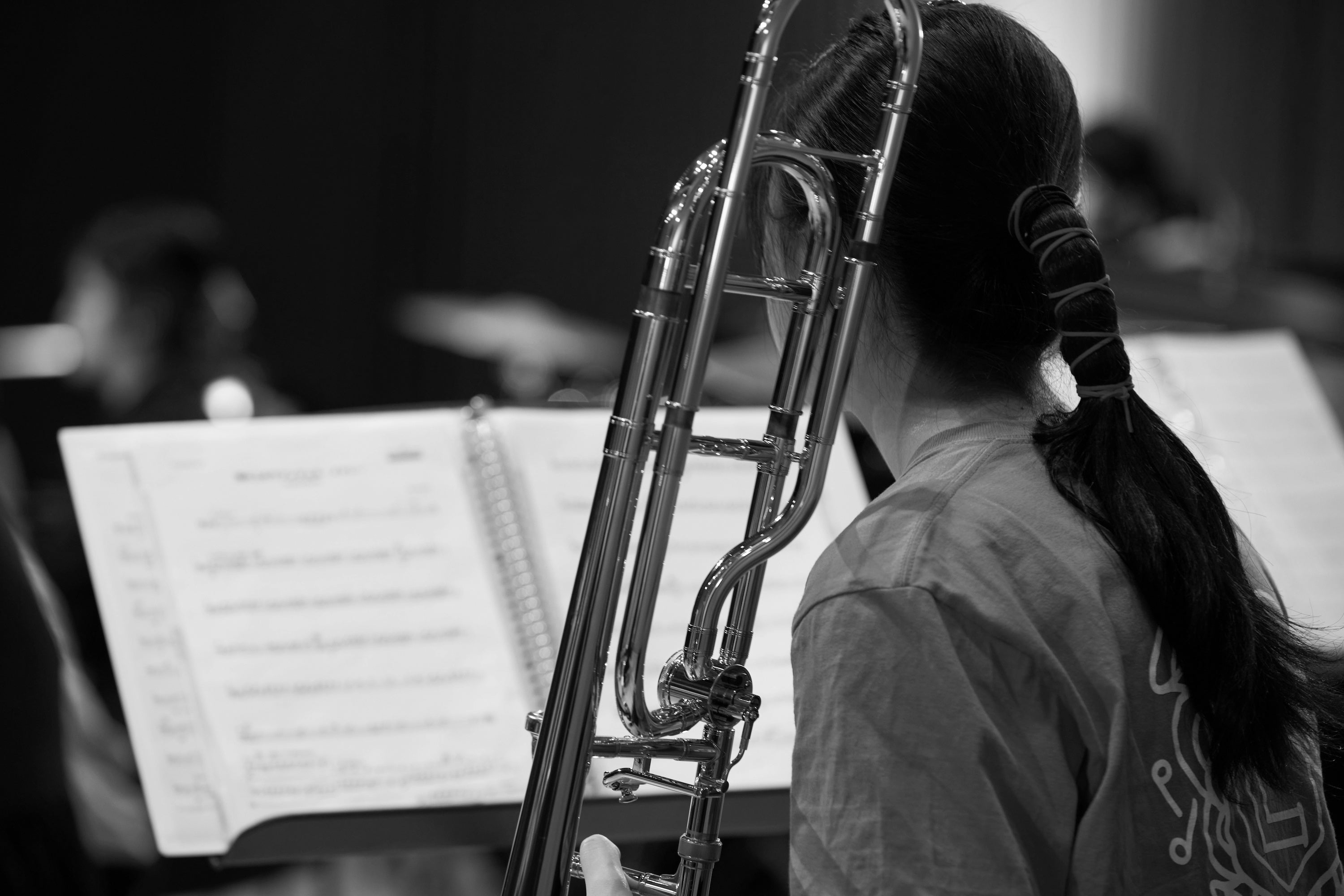 吹奏楽は数多くの楽器が一緒に演奏するので、たったひとりで完成するものではありません。曲や演奏シーンによって、各楽器の役割が変わり、主役となってメロディを担う者、裏で伴奏を受け持つ者、ハーモニーによってメロディと伴奏を繋ぎ止める者など、まるでひとつの社会のように機能することで、初めて聴衆を沸かす演奏を届けることができます。