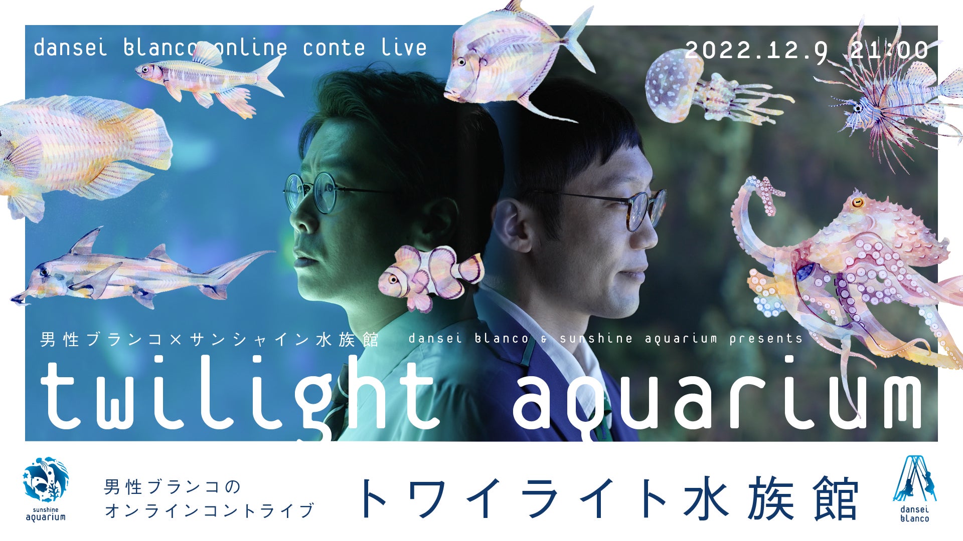 この度、サンシャイン水族館( https://sunshinecity.jp/aquarium/ )で男性ブランコのオンラインコントライブ『トワイライト水族館』(※)を2022年12月9日(金) に開催いたします。