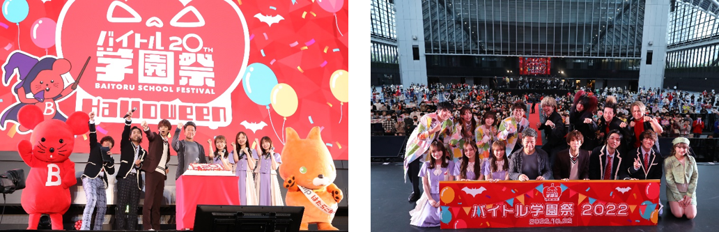 ディップ株式会社(以下、「当社」)は、アルバイト・パート求人情報サイト「バイトル」の20周年を記念して、「乃木坂46」の秋元真夏さん、梅澤美波さん、田村真佑さんや、人気動画クリエイターのはじめしゃちょーさん、水溜りボンドさんを始めとする豪華メンバーが登場した「バイトル学園祭2022」を、2022年10月22日(土)に新宿区西新宿の新宿住友ビル三角広場で開催しました。「バイトル学園祭2022」には、事前に無料でご招待したみなさまに来場いただいたほか、ステージイベントの様子がTwitterで無料配信されました。