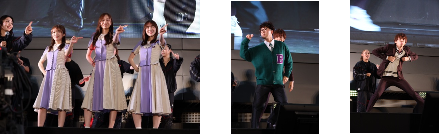 プロダンスチーム「dip BATTLES」が登場し、パフォーマンスで会場を盛り上げた後に実施された「ダンスリレーin バイトル学園祭」には、はじめしゃちょーさんと「乃木坂46」に加え、ボンボンTVのよっちさんも参加。はじめしゃちょーさん、「乃木坂46」の3名、よっちさんの3チームが、dip BATTLESの即興ダンスをリレーで再現しました。来場者も手拍子で出演者を応援し、会場は一体感に包まれました。