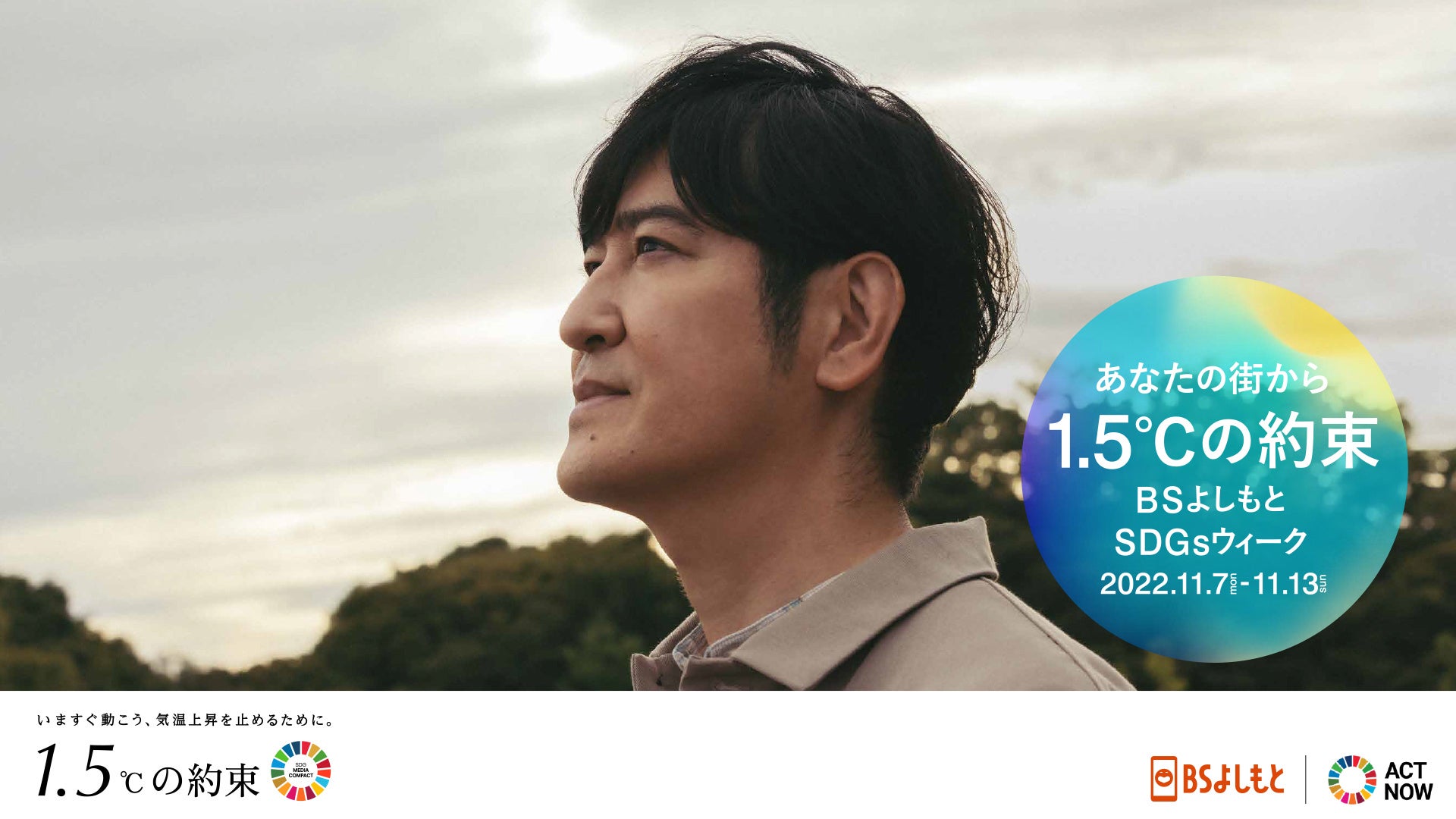 BSよしもとは、国連と「SDGメディア・コンパクト」加盟メディアによる、国レベルでの世界初の共同キャンペーン「1.5℃の約束―いますぐ動こう、気温上昇を止めるために。」に参加し、オリジナルキャンペーン『あなたの街から1.5℃の約束 BSよしもと SDGsウィーク』を2022年11月7日(月)~13日(日)で実施いたします。