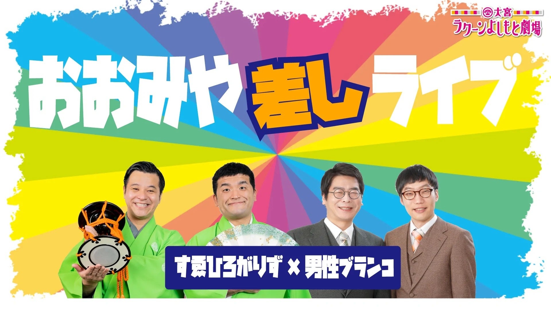 ◆概要:大宮名物の差しライブ!すゑひろがりず/男性ブランコ2組のネタとトークとゲームコーナーがたっぷり観れる60分!
